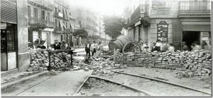 In Spain, the “Tragic Week” began on Monday 26 July 1909 when the union, Solidarad Obrero, which was led by a committee of anarchists and socialists, called a general strike against the call-up of the mainly working class army reservists for the colonial war in Morocco.[17] By Tuesday, workers were in control of Barcelona, the “fiery rose of anarchism,” troop trains had been halted, trams overturned, communications cut and barricades erected. By Thursday, fighting broke out with government forces, and over 150 workers were killed in the street fighting.
