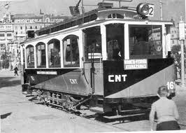 | A CNT-collectivised tram in Barcelona. Trams ran better, safer and carried more people. |